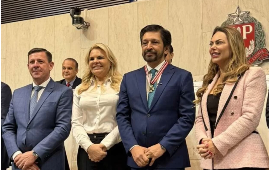 Deputada Carla Morando homenageia prefeito Ricardo Nunes com o Colar de Honra ao Mérito Legislativo na Alesp