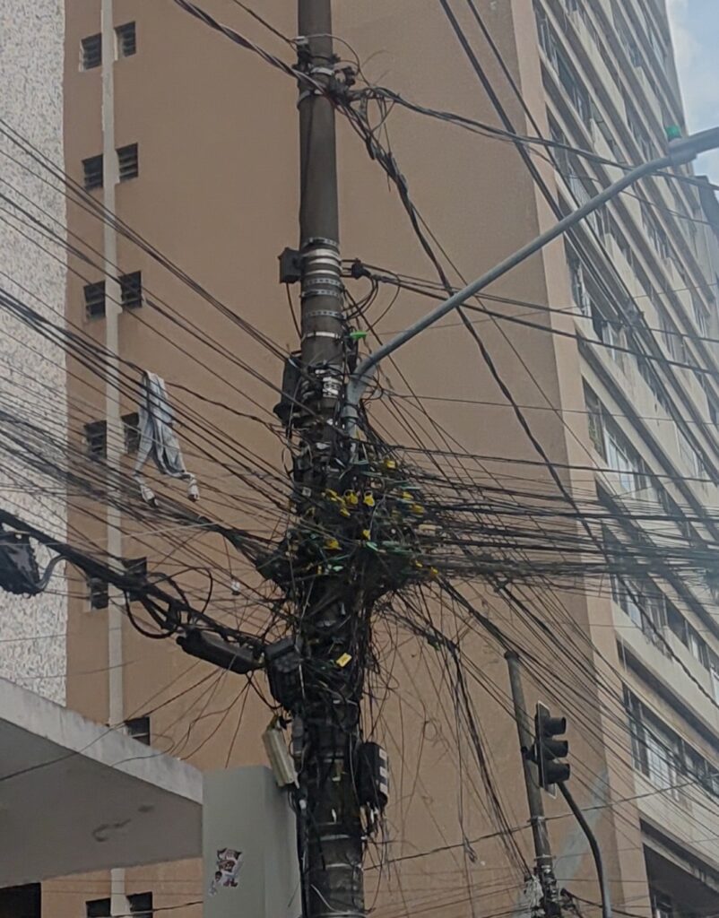 Enquanto medidas estruturais não avançam, a população segue convivendo com postes sobrecarregados e um cenário que mistura descuido, risco e poluição visual em pleno centro da maior cidade do país.