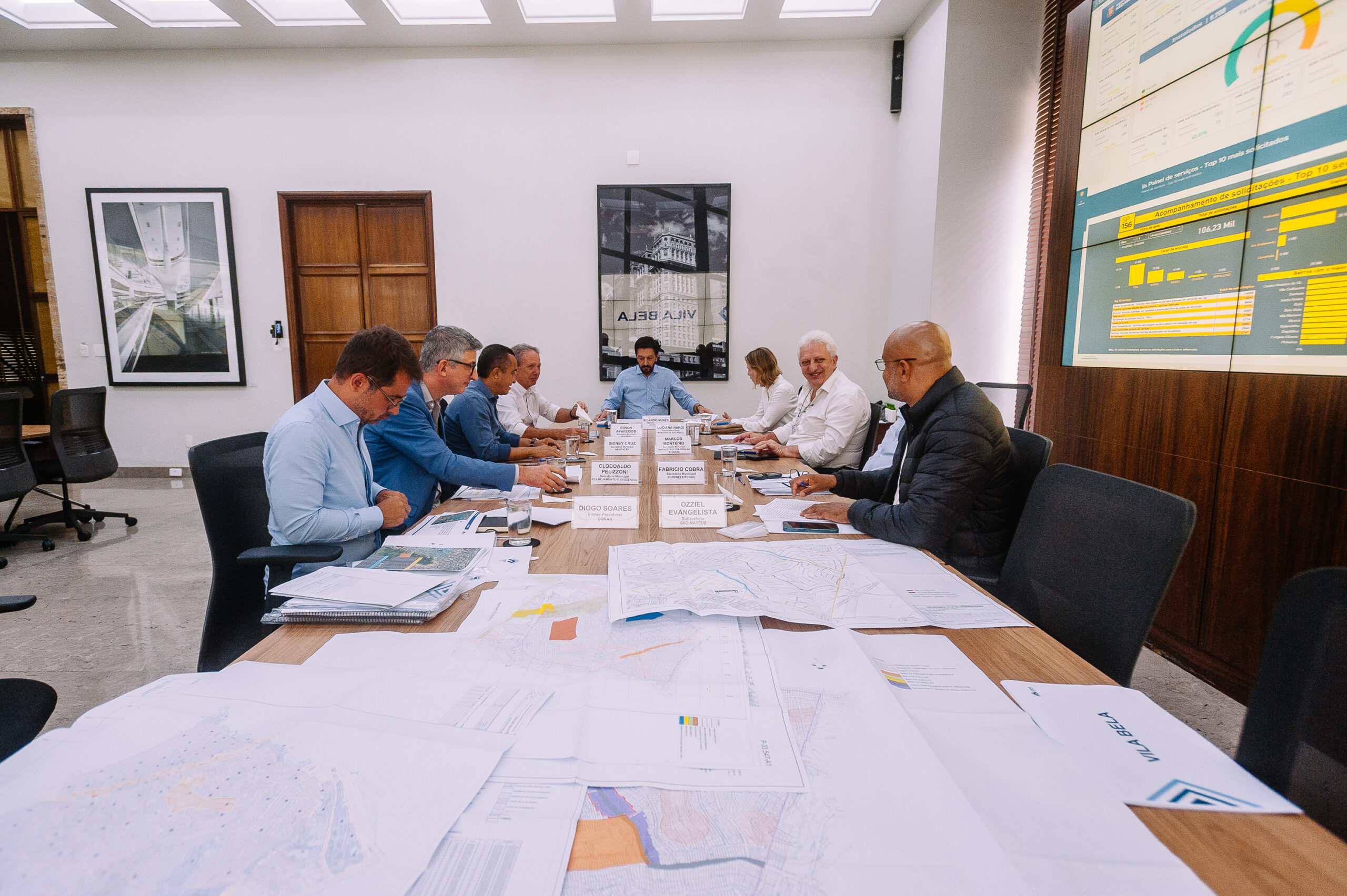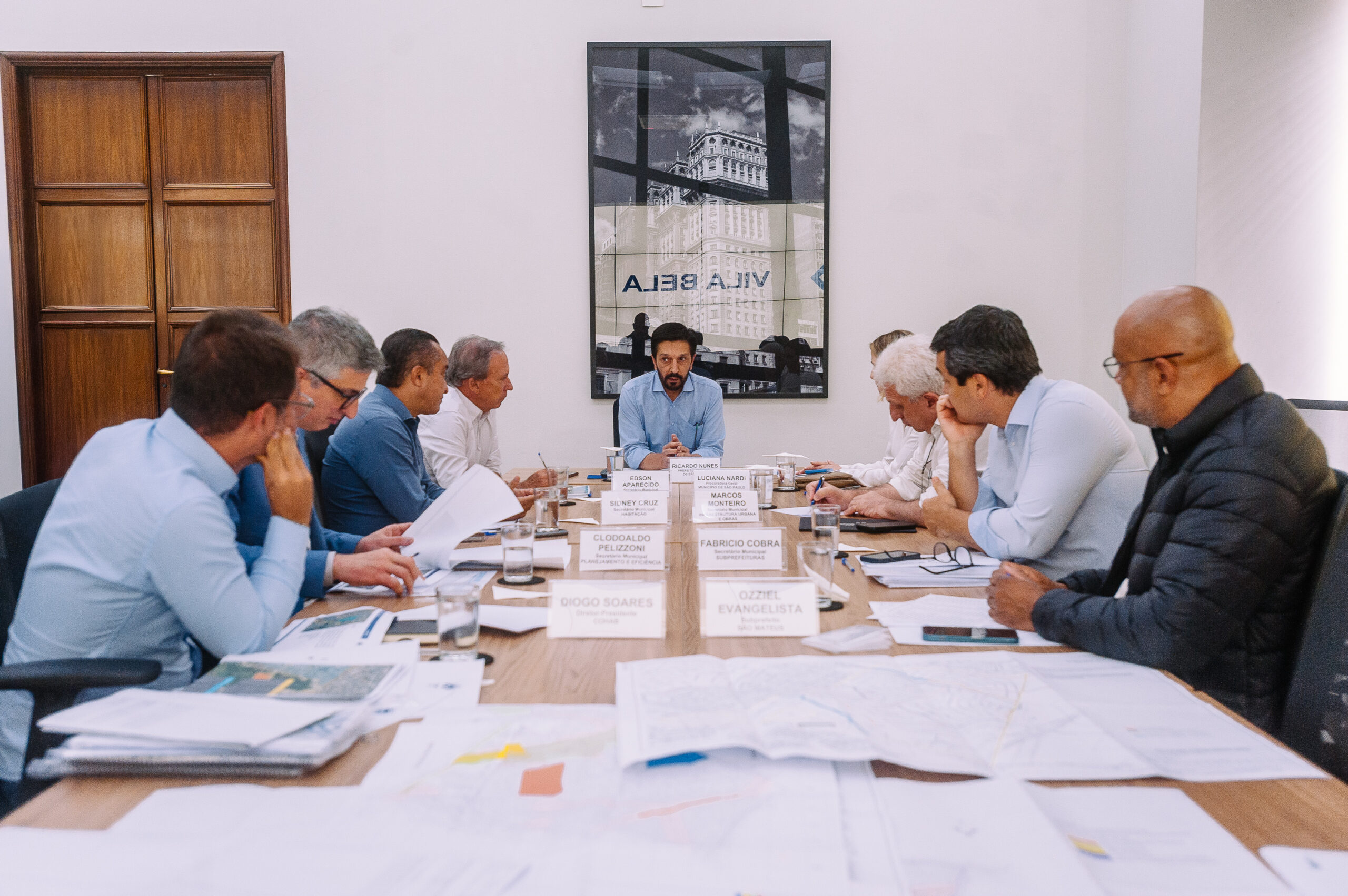 Participaram do encontro os secretários municipais Fabrício Cobra (Subprefeituras), Clodoaldo Pelizzoni (Planejamento e Eficiência), Sidney Cruz (Habitação) e Marcos Monteiro (Infraestrutura Urbana e Obras). Também estiveram presentes a procuradora-geral do Município, Luciana Nardi, e o diretor-presidente da Cohab, Diogo Soares.